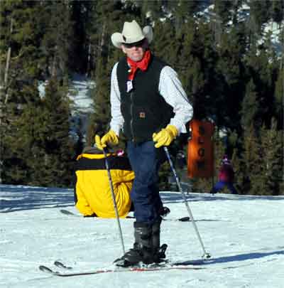 Cowboy-påkledning er heller ikke så vanlig blant skiløpere i USA, tror jeg. Likevel er det litt morsomt å se slike kulturforskjeller, at det som kanskje vil vekke oppmerksomhet hos oss i Norge, kan være ganske så naturlig og normalt andre steder. Bildet er fra Terry Peak, i Sørdakota.