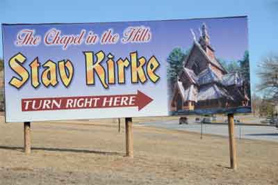 Veiplakat til Stav Kirke, Rapid City, South Dakota, USA